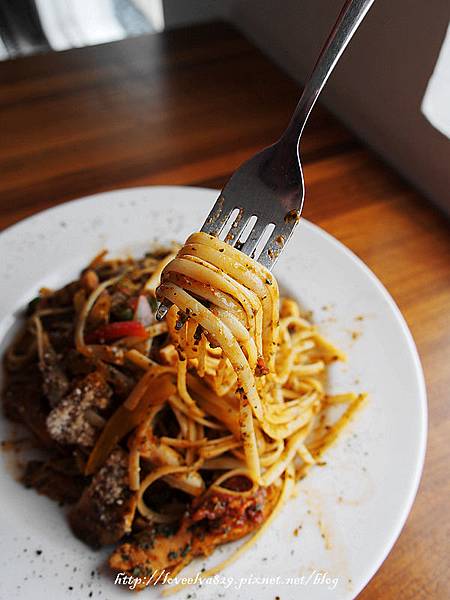 紅青醬香烤雞肉細扁麵~
