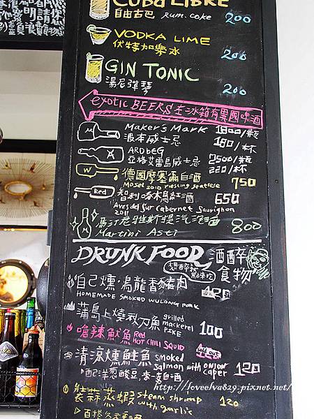 吧台前的小黑板即是menu~